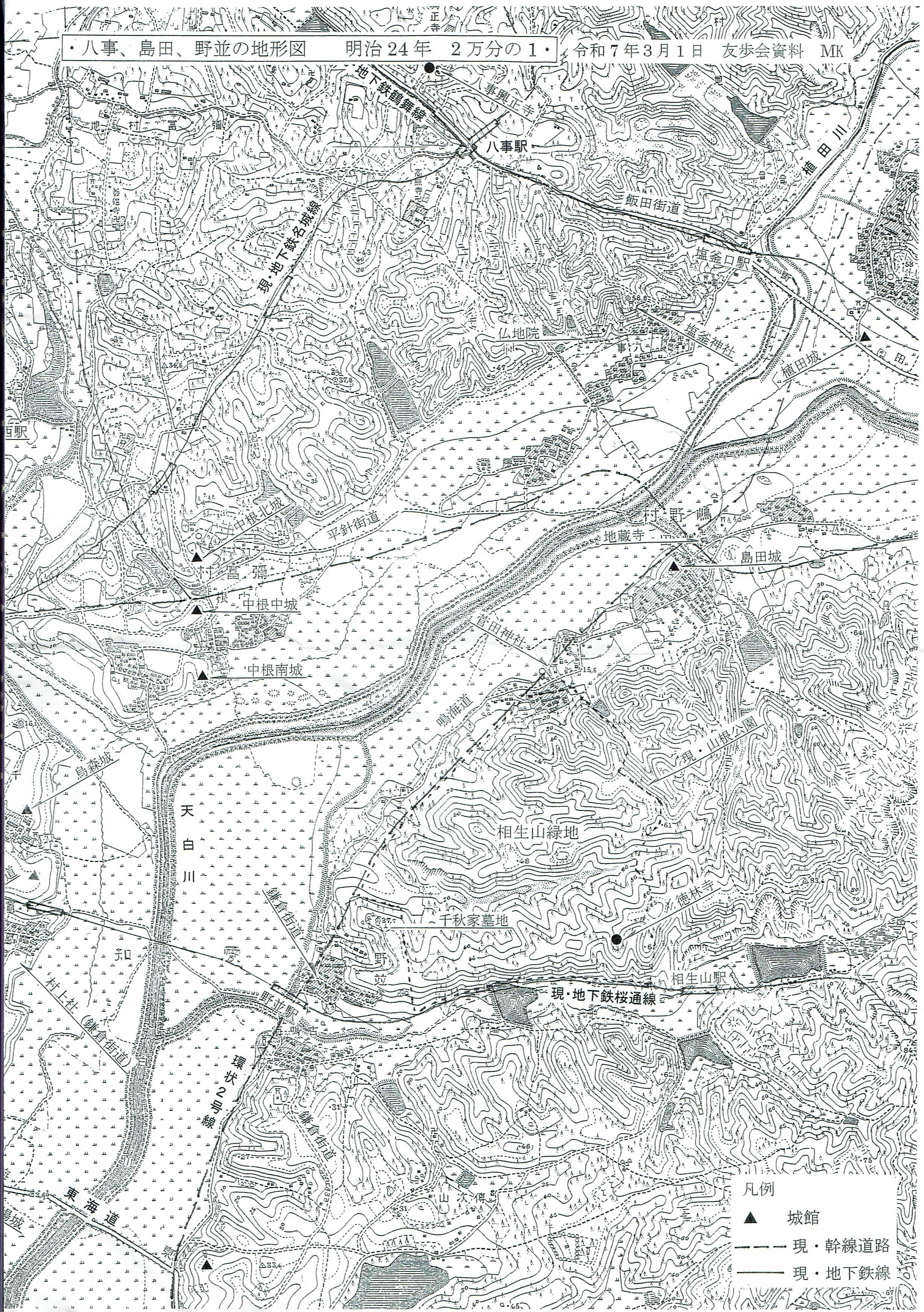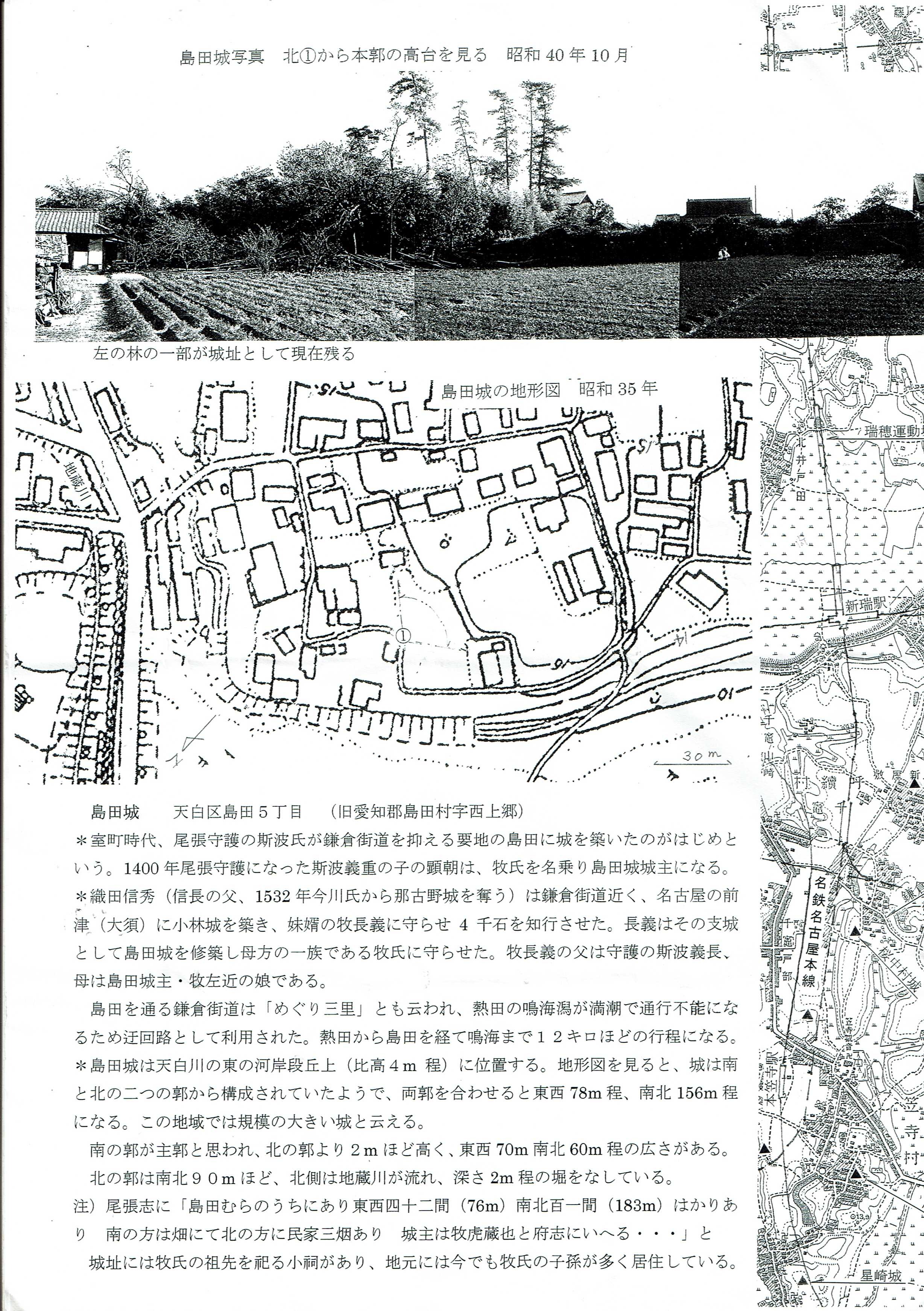 ★八事、島田、野並の地形図★島田城写真と地形図 ★天白区史跡散策路