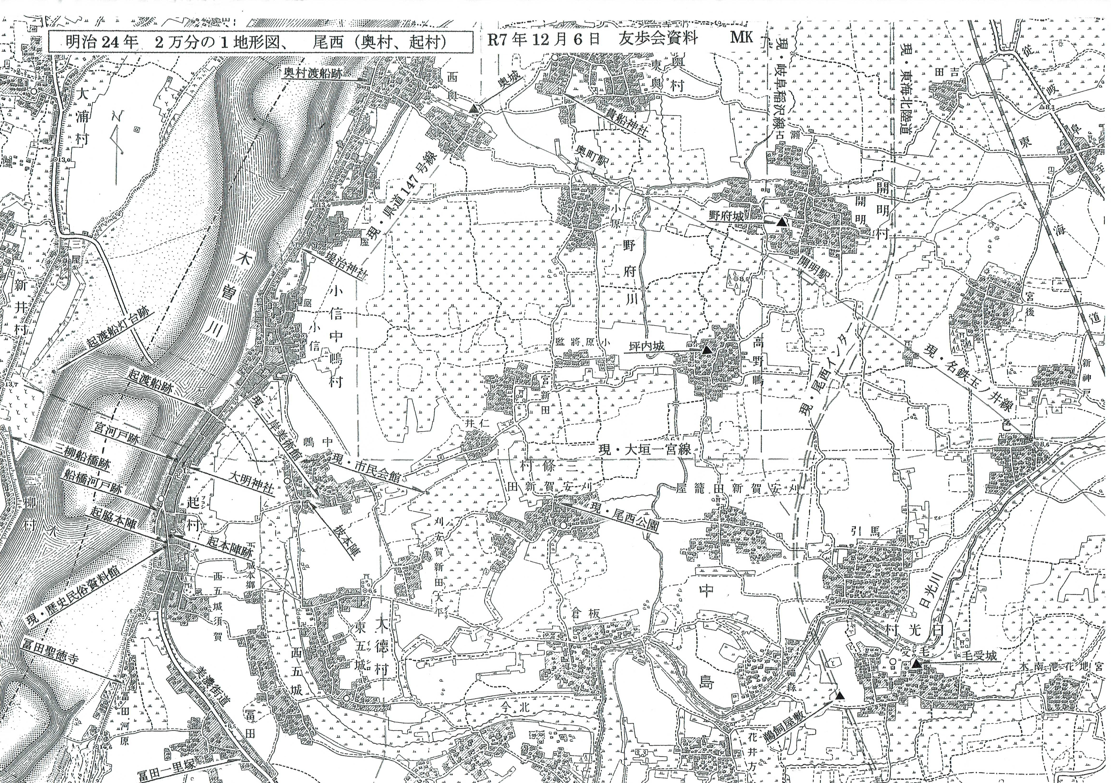 | 明治24年 尾西(奥村、起村)地形図 ByMK 2025.12.06(r712wm24.jpg) ★Topへ |