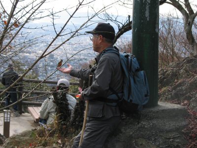 ★12月23日は天皇誕生日で休日、快晴、金華山・岐阜城には大勢の行楽客が集まり、やまがらの餌とりも