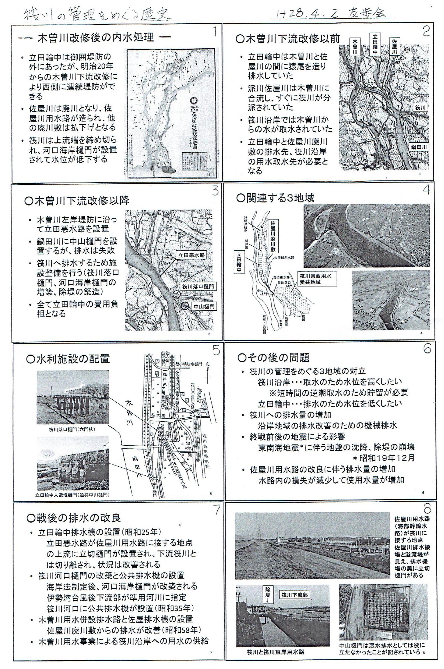 ★立田輪中人造堰樋門★御囲堤と輪中★筏川管理の歴史(H28.4.2開催資料)★コースマップ(PDF)