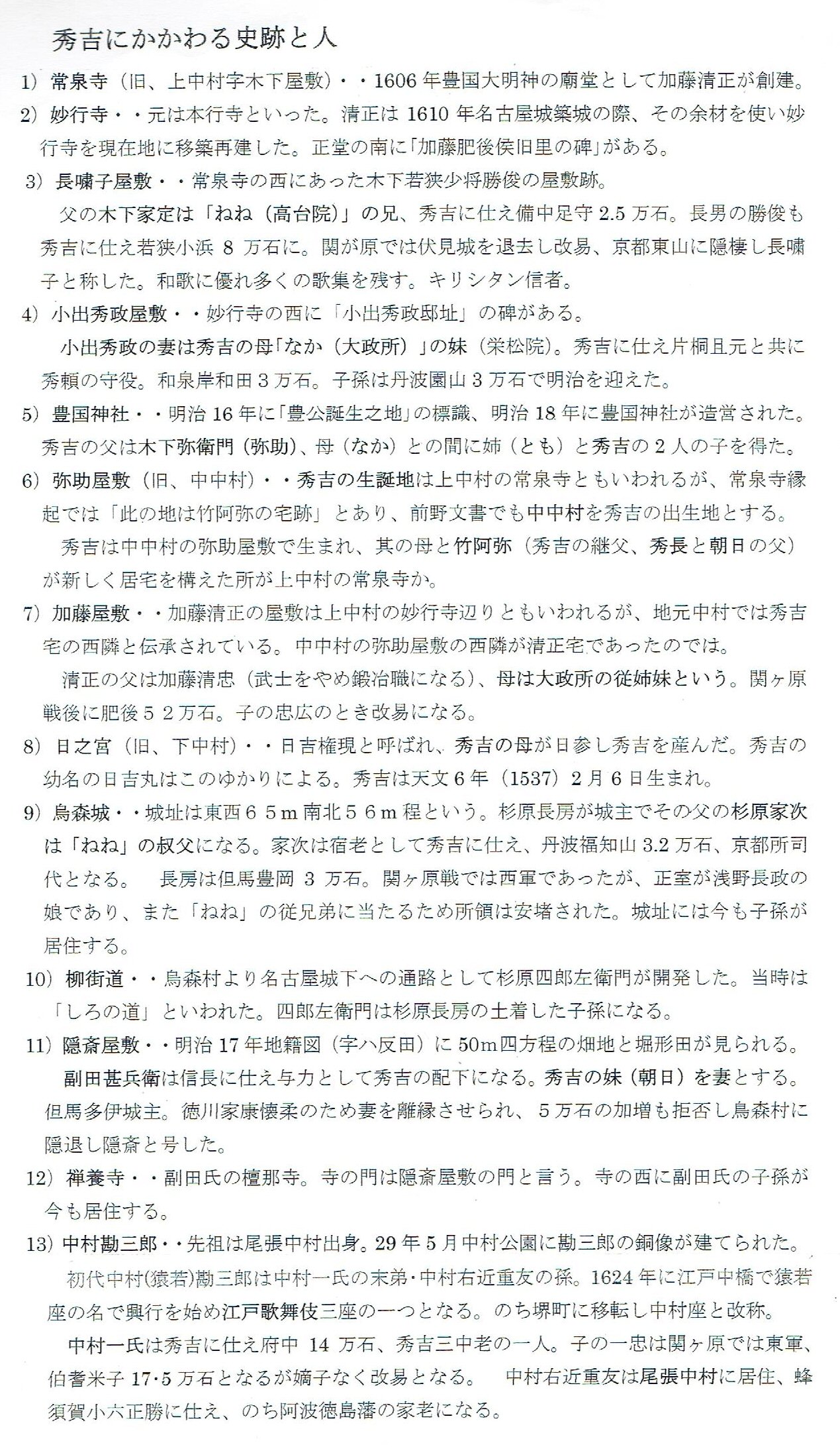 ★秀吉に関わる史跡と人★秀吉に関わる史跡と人(常泉寺縁起)