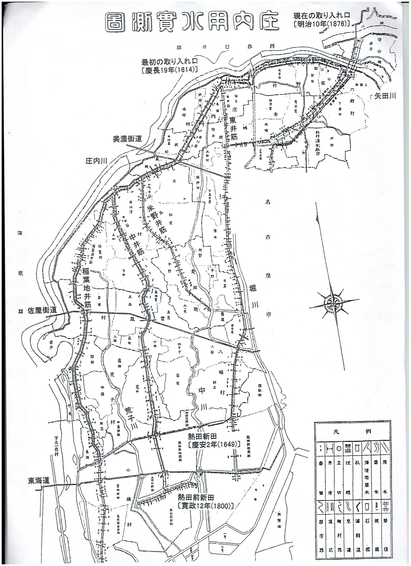 明治10年(1876)庄内用水実測図(友歩会例会は、この図にある「庄内用水の中井筋」を南下した。) Top![]() |