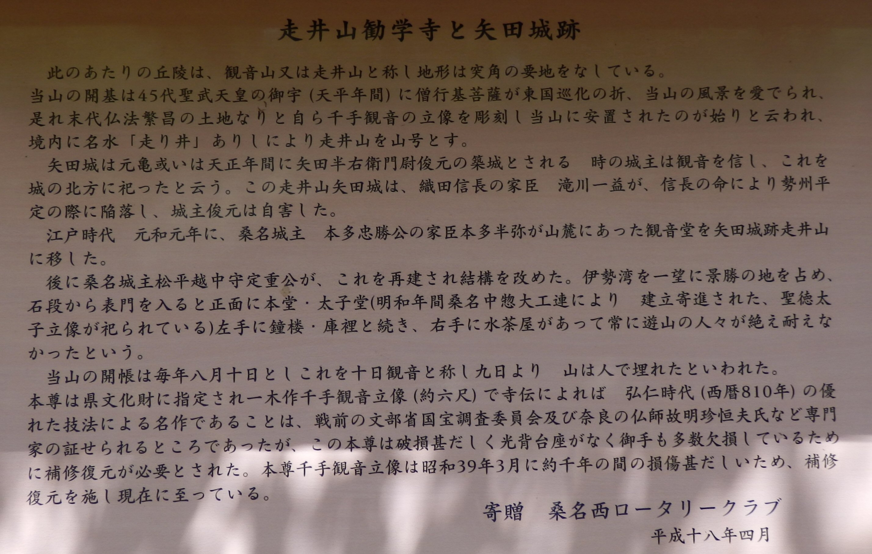 走井山勧学寺と矢田城跡の説明 80mw1582 Top![]() |