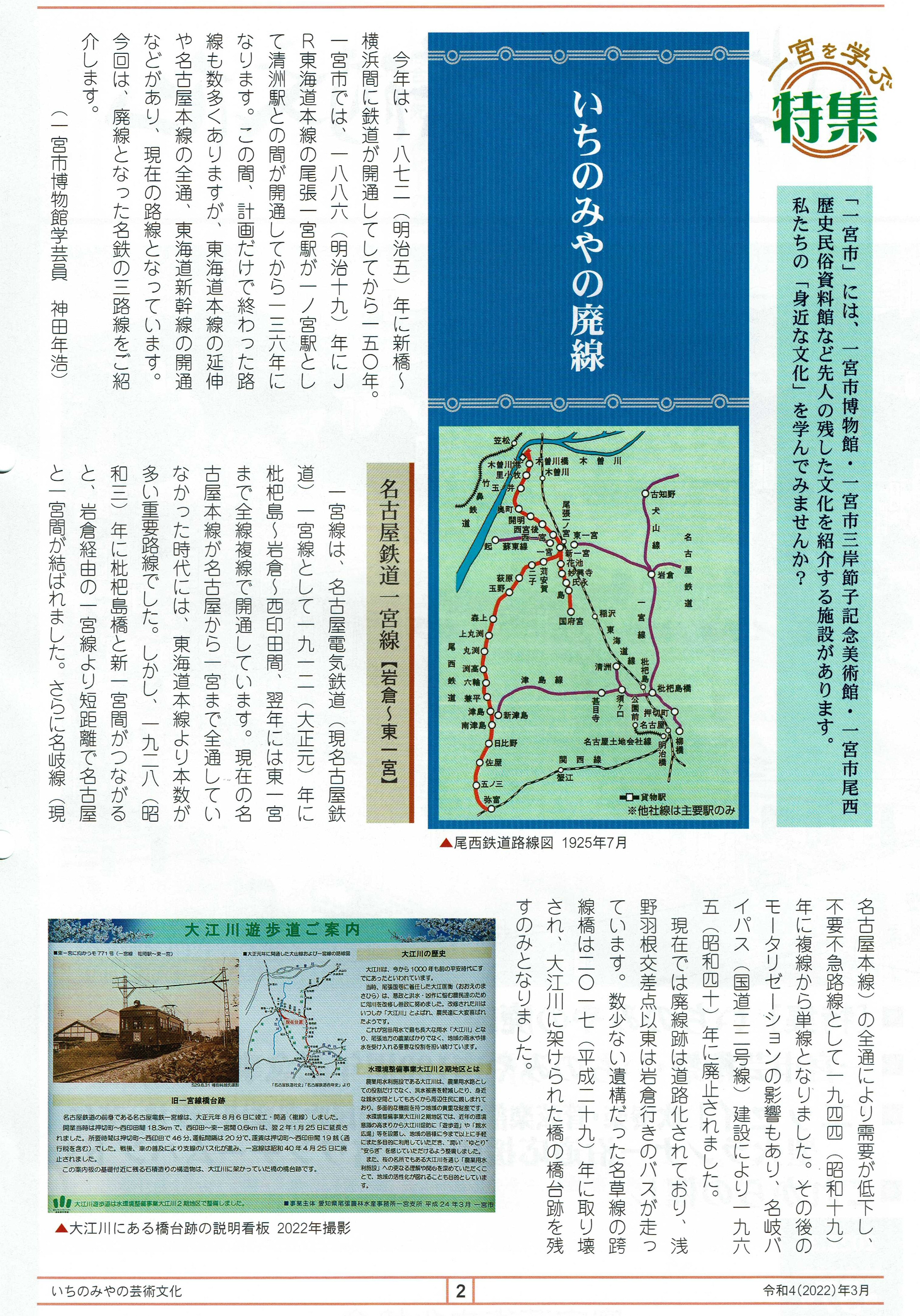 いちのみやの芸術文化(2022.3 第57号・表紙)特集いちのみやの廃線 Top![]() 左下に名古屋鉄道尾西線(玉ノ井〜木曽川港)がある。 Top |