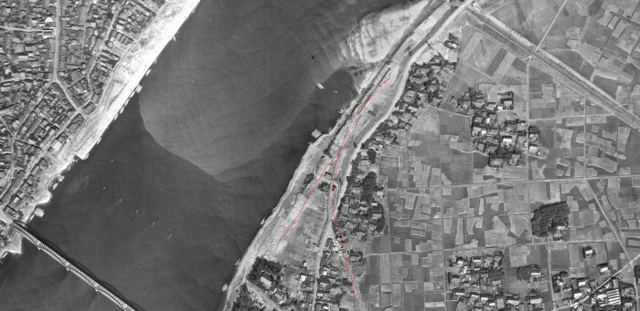 廃線全体航空写真(下) 木曽川港駅付近・スイッチバックの跡(赤線) Top ![]() 廃線航空写真1 廃線航空写真2 Top |
