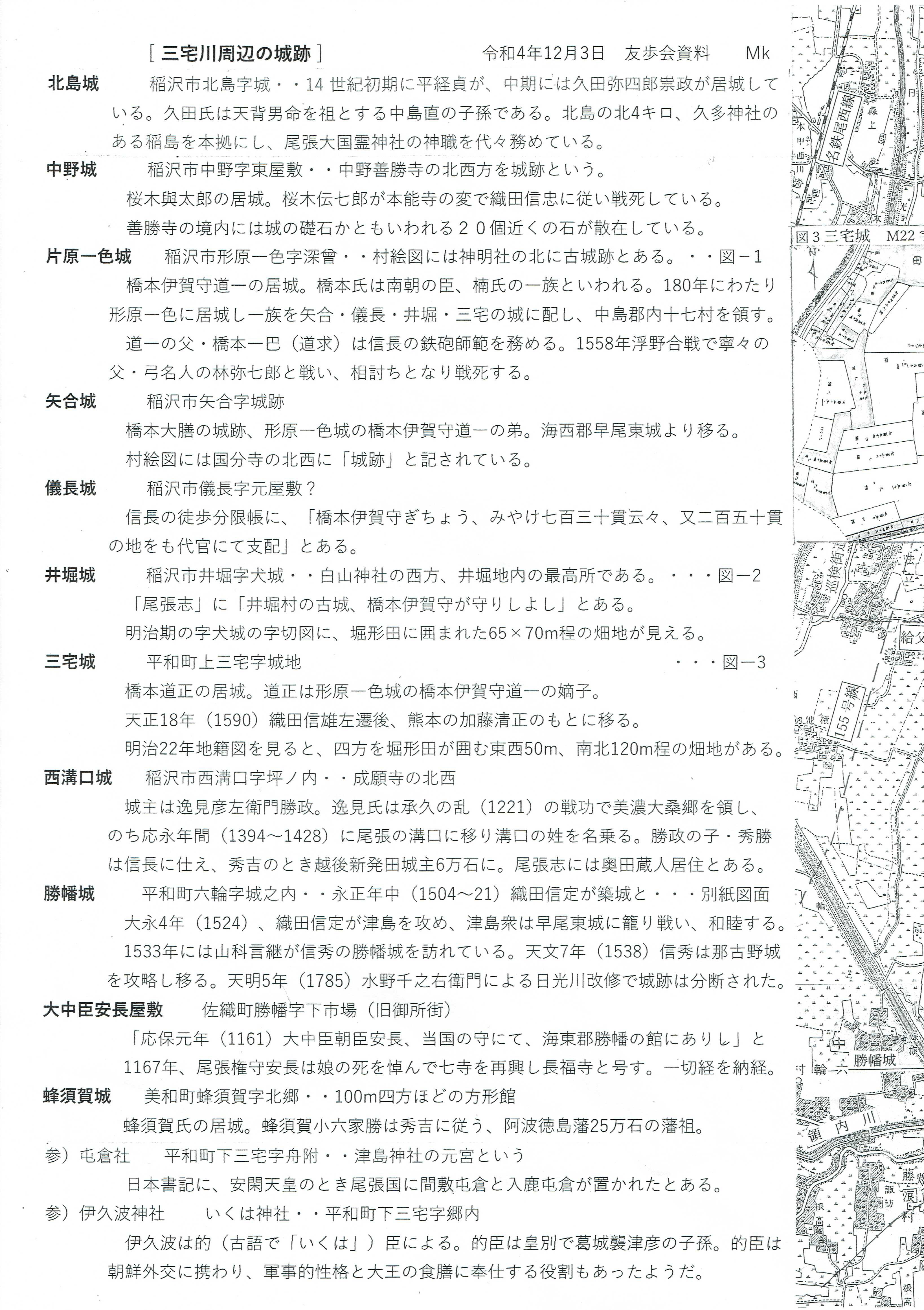 ※三宅川の蛇行の様子 ※澤園兵衛の治水事業 ※三宅の地名の由来 ※見どころ説明 ※三宅川周辺の城跡
