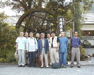 (32年ぶりに再会の人も・・・大滝温泉 天城荘の玄関 水車前にて)