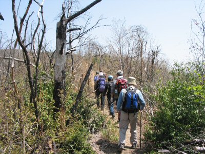 ![]() 山頂付近では、多くの木々がまだ焼け跡の状態でした。 |