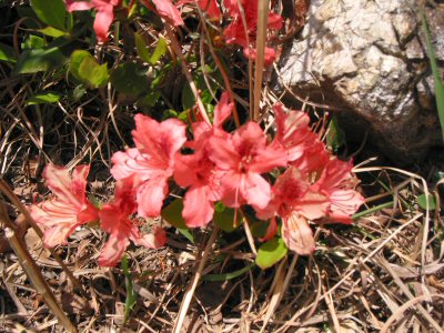 ![]() 山腹には山ツツジの花が印象的であった。 |