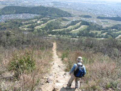 ![]() 山頂から下山(前方は各務原ゴルフ場) |