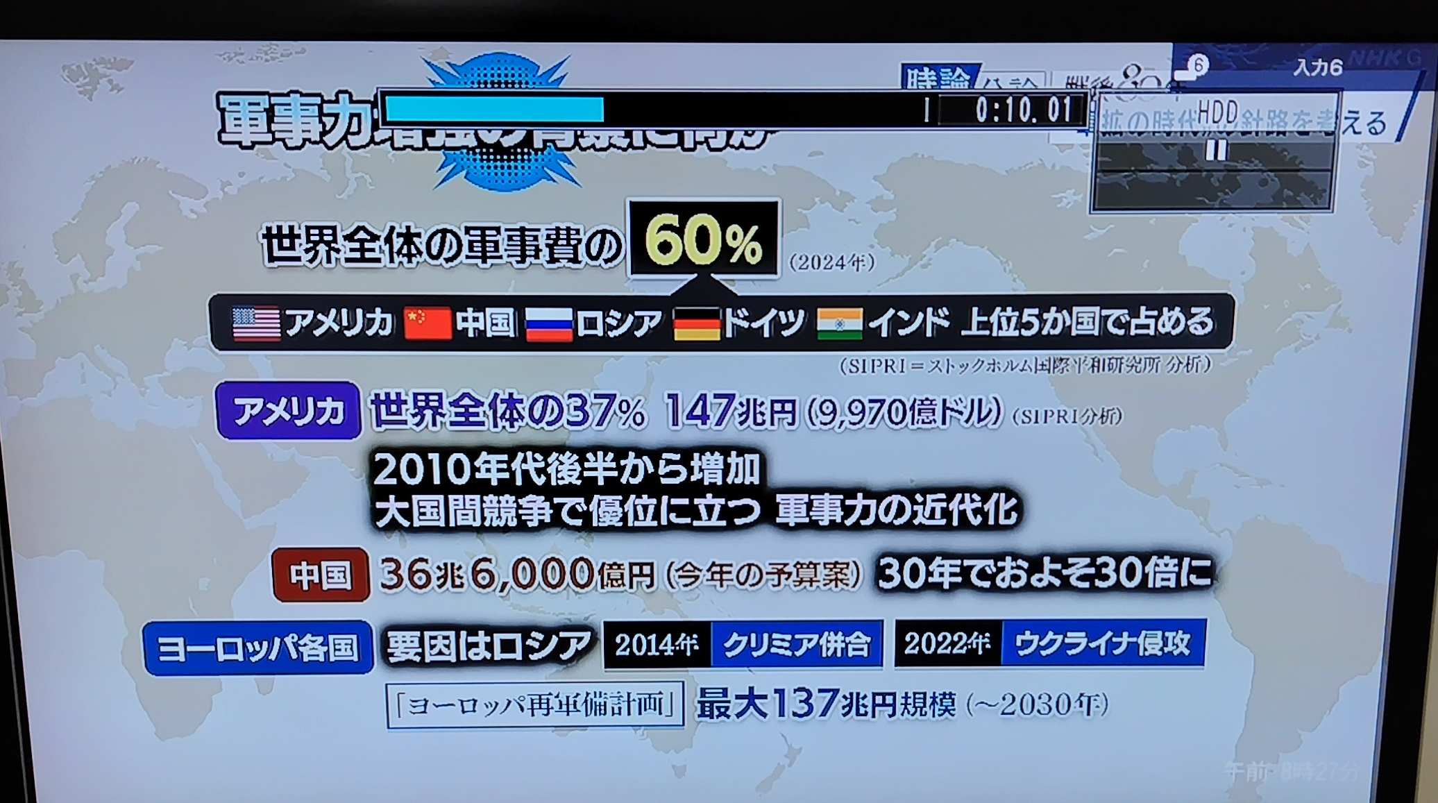 2025.8.7NHK「時論公論」戦後80年・”軍拡の時代”の針路を考える 2025.8.18(#jiron)![]()