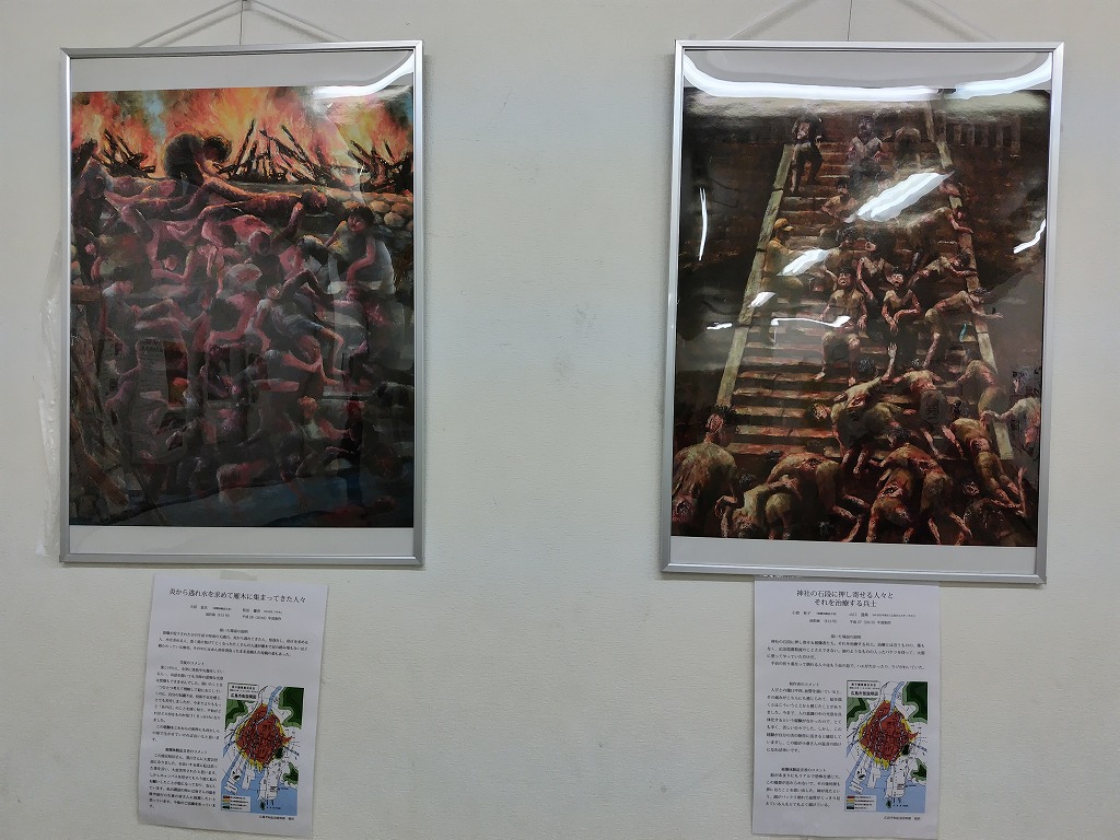 8.6午前9時頃の天満川(左)と神社の石段に倒れる人々53240![]() |