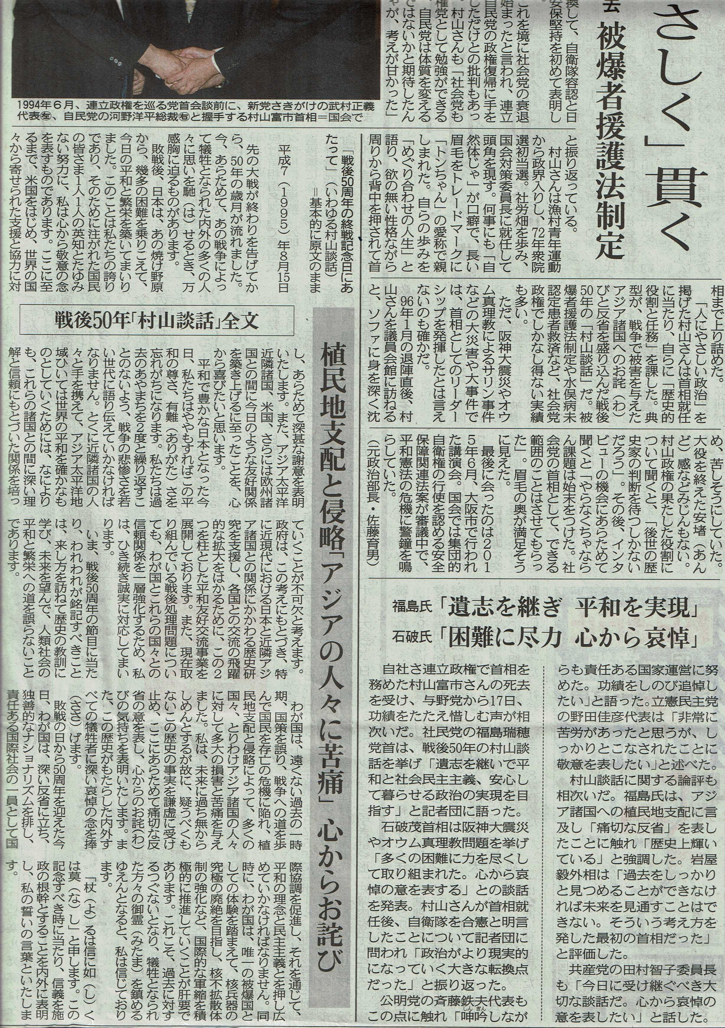 戦後50年「村山談話」全文(中日新聞2025.10.18総合P2掲載)(#mura)