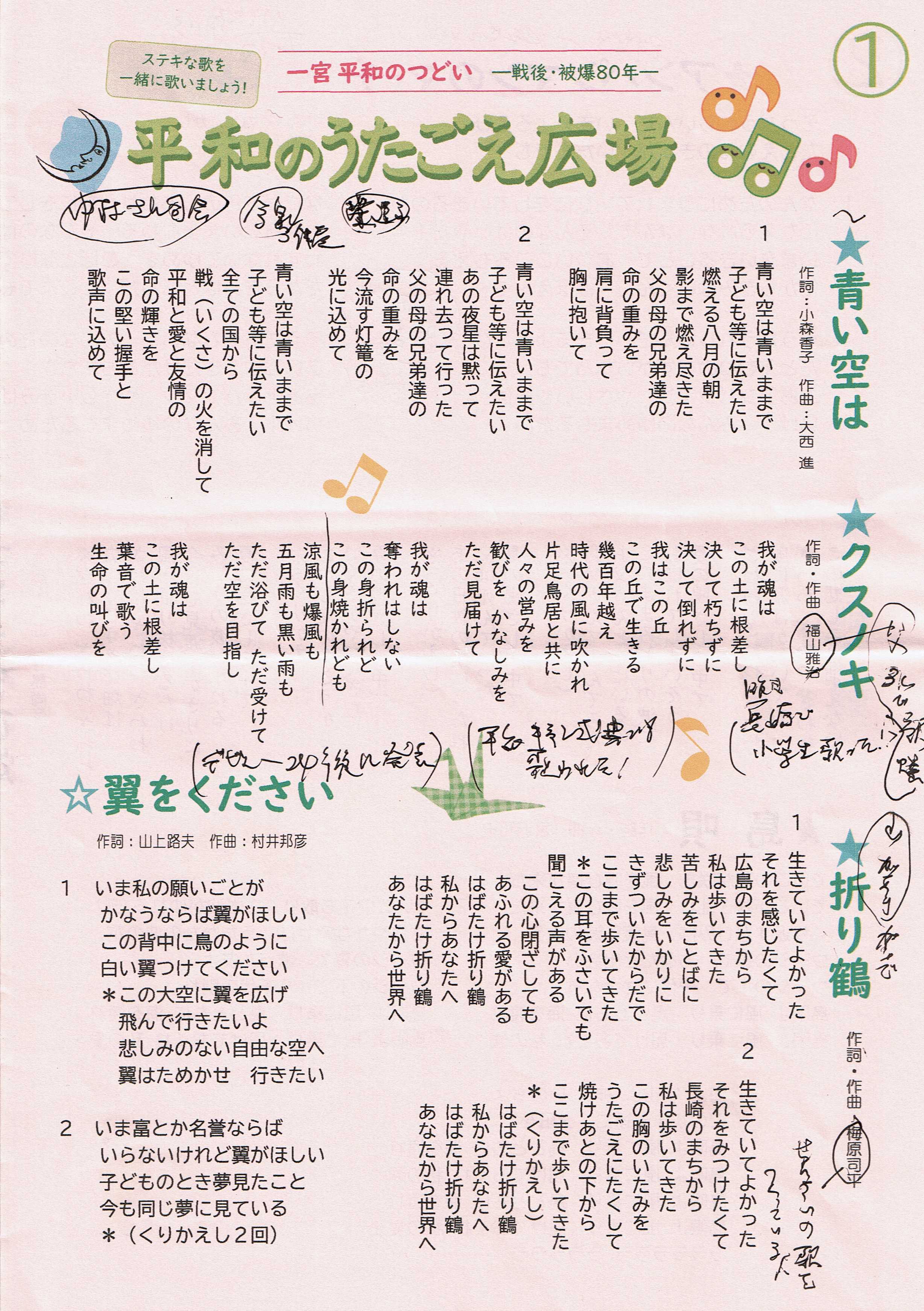 一宮平和のつどい−戦後・被爆80年 平和のうたごえ広場歌詞(p1) 2025.8.10、14:00〜 Top![]() |