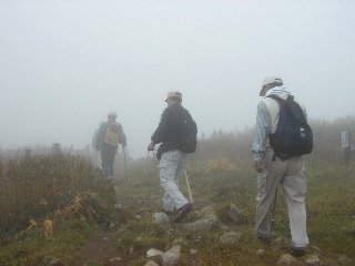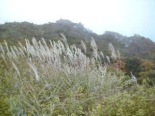 帰りのコース(霧の為視界が数10mしかなかった) 道中、すすきがきれいに咲いていた。