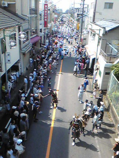 ![]() 一豊公の登場(歩道橋上から携帯で撮す102) |