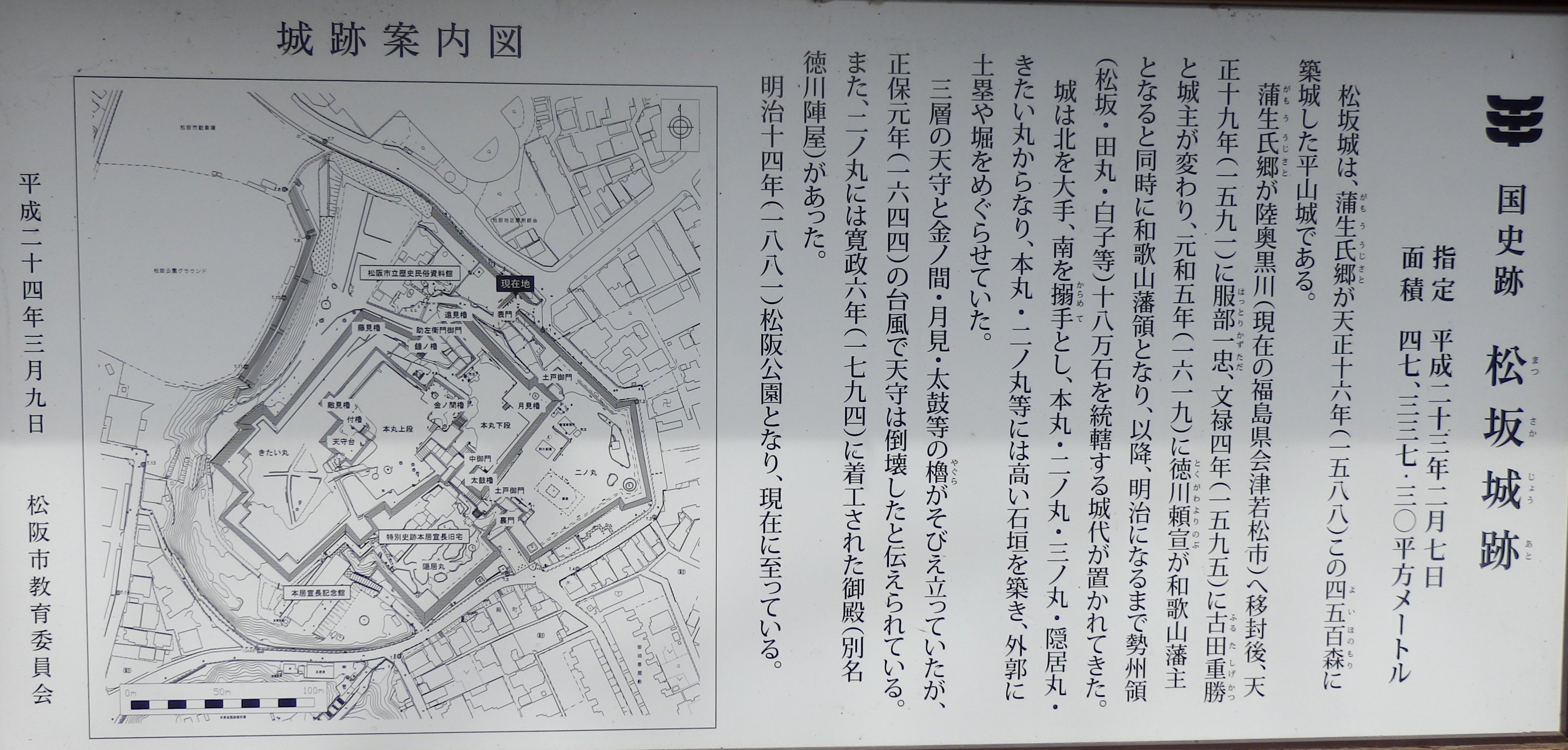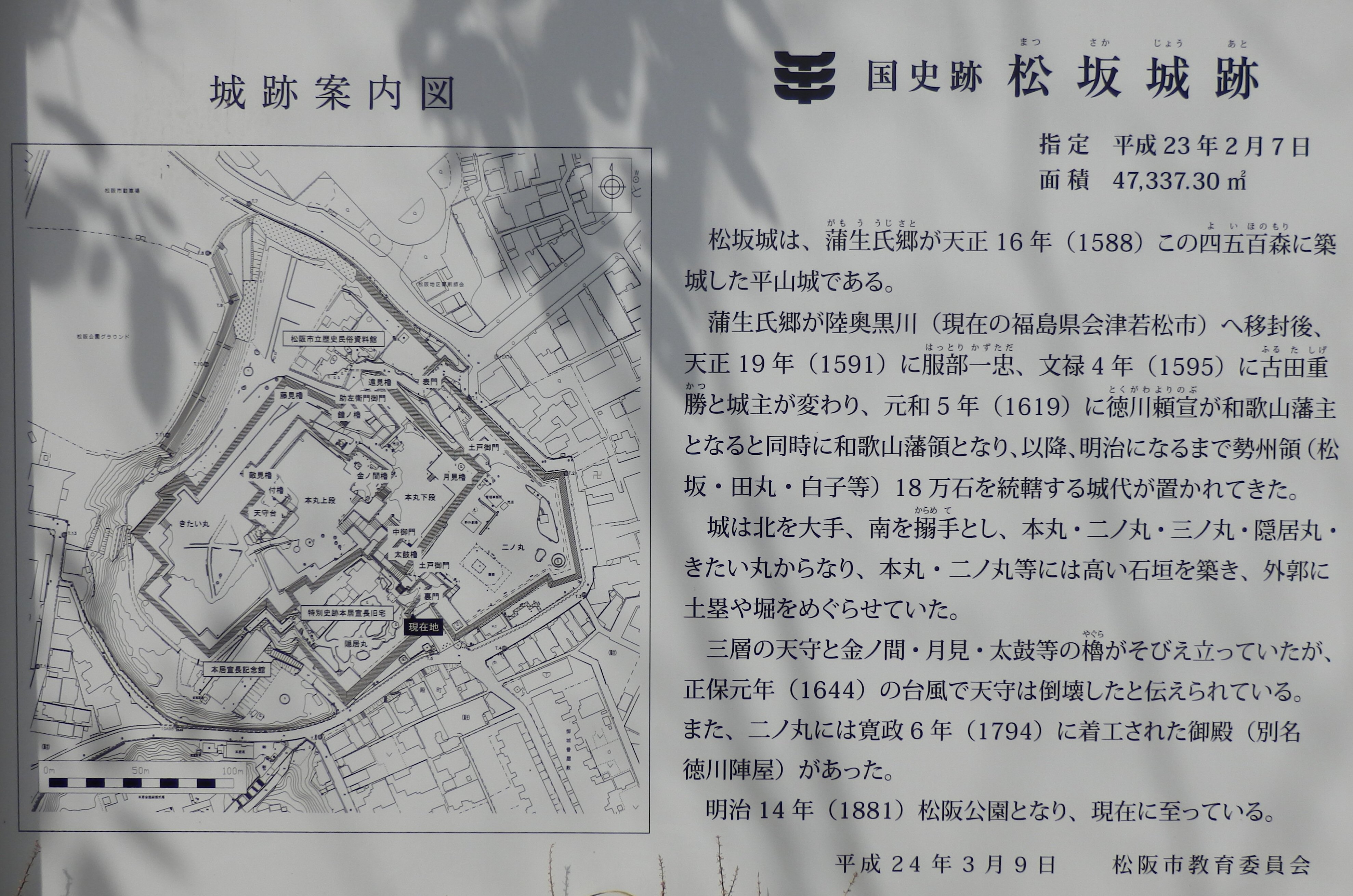 2011年(平成23年)2月7日 - 約4.7haの城跡が「近世の政治・軍事を知る上で貴重」であるとして、松坂城跡として国