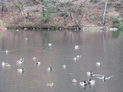 コイやオシドリ、マガモ、カルガモなどが生息。