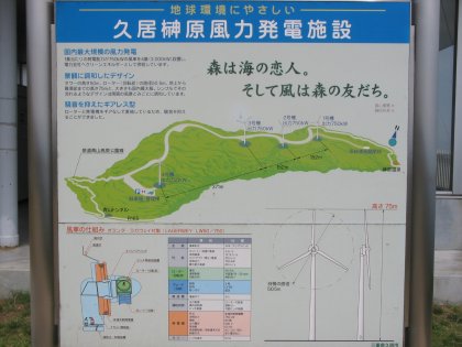 青山高原に設置された風車 と 案内看板