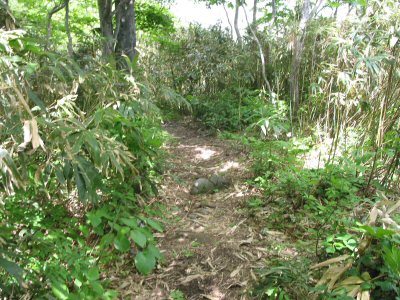 ![]() 笹の林道、木の根が露出していて足下には要注意 |
