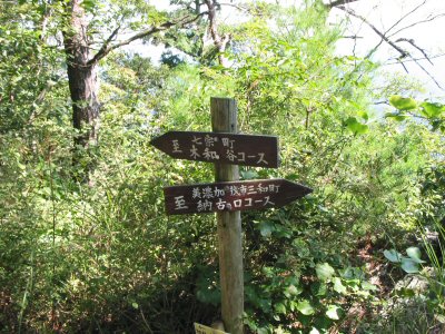 ![]() 納古山登山道の案内標識 |
