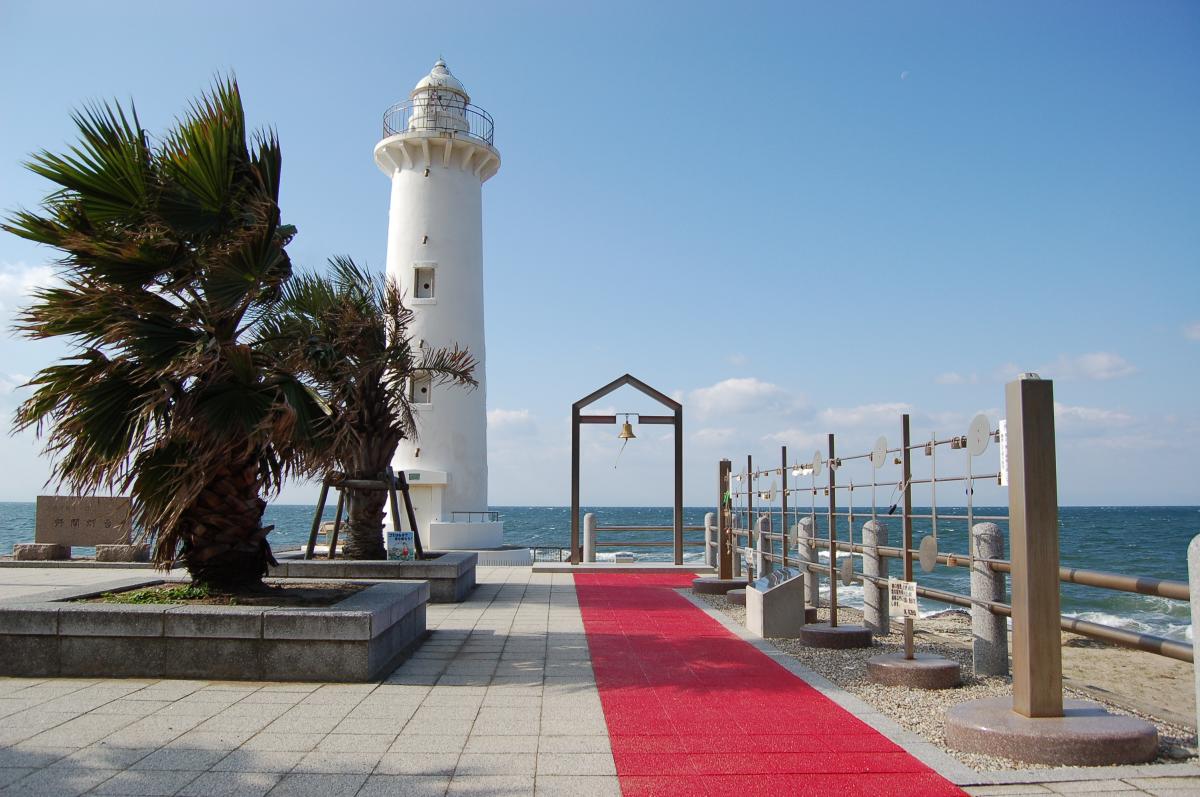 野間埼灯台(出典: フリー百科事典『ウィキペディア(Wikipedia)』) ★topへ 野間埼灯台の位置(愛知県内)野間埼灯台 航路標識番号:[国際標識番号] 2632 位置 北緯34度45分28.01秒 東経136度50分40.32秒座標: 北緯34度45分28.01秒 東経136度50分40.32秒 所在地 愛知県知多郡美浜町小野浦岩成20-1 塗色・構造 白色 塔形 コンクリート造 レンズ LED灯器V型 灯質 等明暗白光 明3秒暗3秒 実効光度 590 cd 光達距離 8.0海里(約15km) 明弧 326度から164度まで 塔高 18 m (地上 - 塔頂) 灯火標高 20 m (平均海面 - 灯火) 初点灯 1921年(大正10年)3月10日 管轄 海上保安庁 第四管区海上保安本部 登録有形文化財 登録日 2022年6月29日 登録コード 23-0579 野間埼灯台は、愛知県知多郡美浜町の野間崎に立つ中型灯台である。管轄は海上保安庁第四管区海上保安本部。地元では野間灯台(のまとうだい)と いう通称でも知られる。 「歴史」 初点灯は1921年(大正10年)3月1日であり、愛知県最古の灯台とされる[2]。建物は無筋コンクリート造という珍しい構造であり、高さは18メートル、 下部外径は3.8メートル、壁厚は0.92メートルである。灯台内部は五層になっている。 2008年(平成20年)には野間埼灯台機器改良改修工事が行われた。第5フレネル式レンズはLED灯器に交換され、光度は15,000カンデラから590カンデラ に弱まり、光達距離は約25kmから約15kmに短くなったものの、省電力化されて災害にも強くなった。この時交換されたフレネルレンズは三重県にある 大王埼灯台に資料として保管されていたが、美浜町に寄贈されていた名古屋港防波堤灯台のレンズと交換する形で、2022年に里帰りし、現在は野間埼 灯台近くの、食と健康の館で展示されている。 2021年(令和3年)には初点灯100周年を迎え、記念式典の開催や記念冊子の制作が行われた。 「美浜まちラボ」が保存や活用に取り組んでおり、2022年(令和4年)には海上保安庁によって「美浜まちラボ」が航路標識協力団体に認定されたこと で、同年のゴールデンウィークには試験的に一般公開を実施して人気を集めた。同年6月29日には登録有形文化財に登録された。 美浜町では野間郵便局旧局舎に次いで2件目の登録有形文化財である。 2013年(平成25年)から愛知登文会などが毎年秋に開催している「あいちのたてもの博覧会」(あいたて博)では、2022年(令和4年)から野間埼灯台 も参加している。 ★topへ |