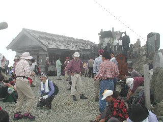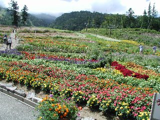 覚明霊神の幟旗(9合目付近) 下の鹿ノ瀬高原駅にあった高山植物園