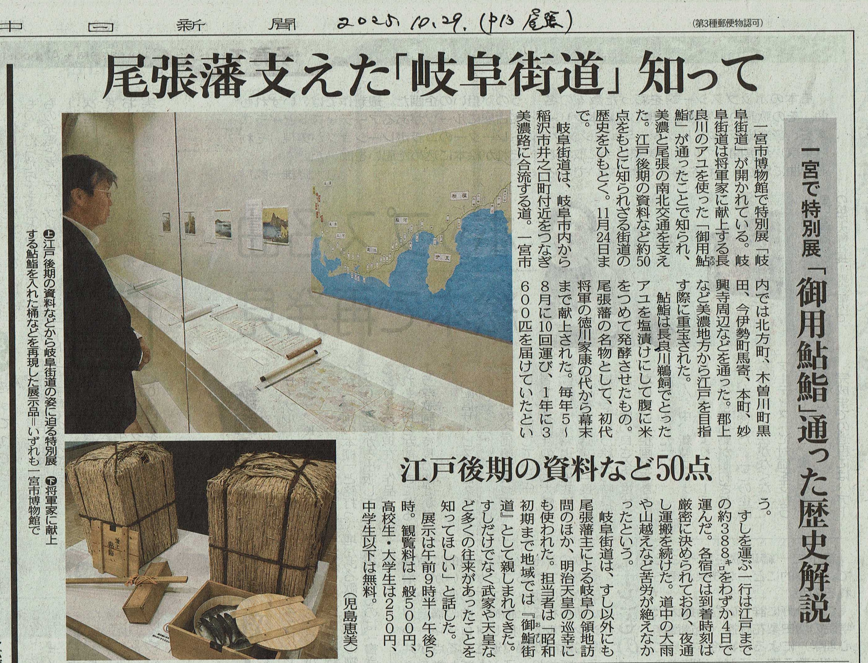 ★「岐阜街道(特別展)」(一宮市博物館)(中日新聞2025.10.29尾張版p13から)