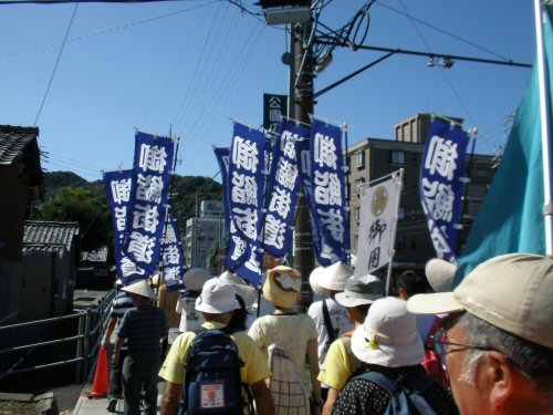 ![]() 御鮨街道の旗の後に参加者が続く018 9:38 |