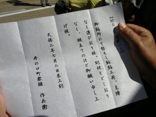 ![]() 井ノ口まちづくり会から御鮨所跡の案内を受け取る 021 9:49 |