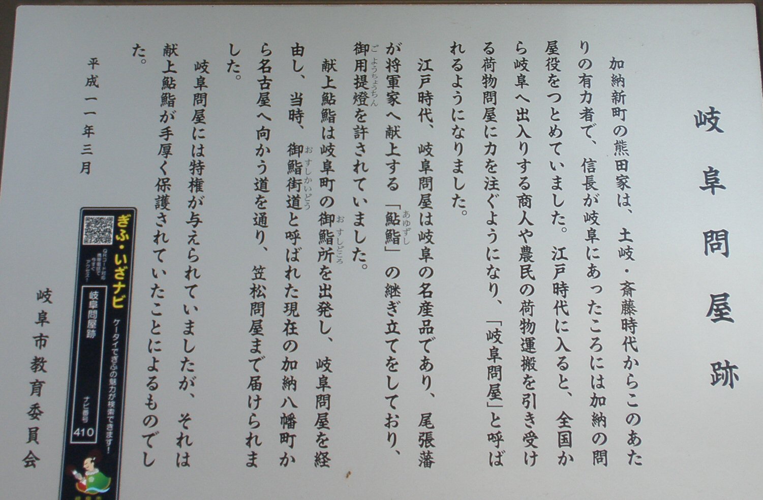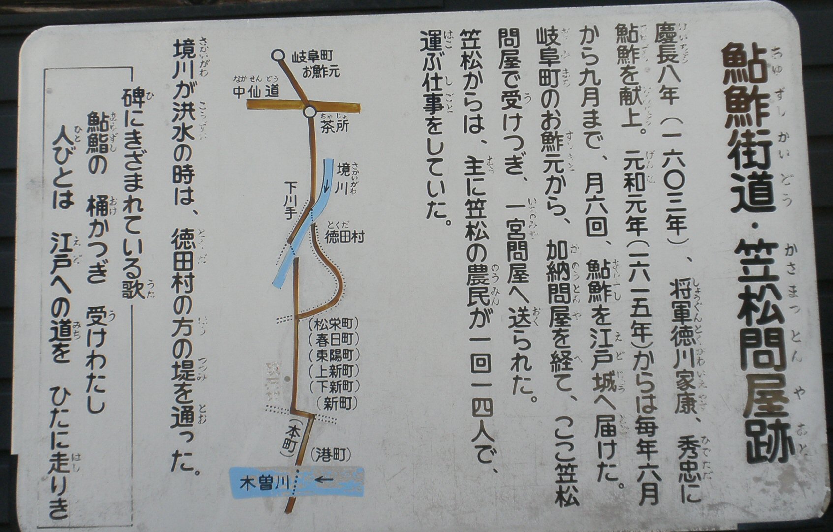 ★鮎鮨荷(説明)★御鮨所跡★岐阜問屋跡★鮎鮨街道・笠松問屋跡★京みちの道標★石畳 ★笠松湊