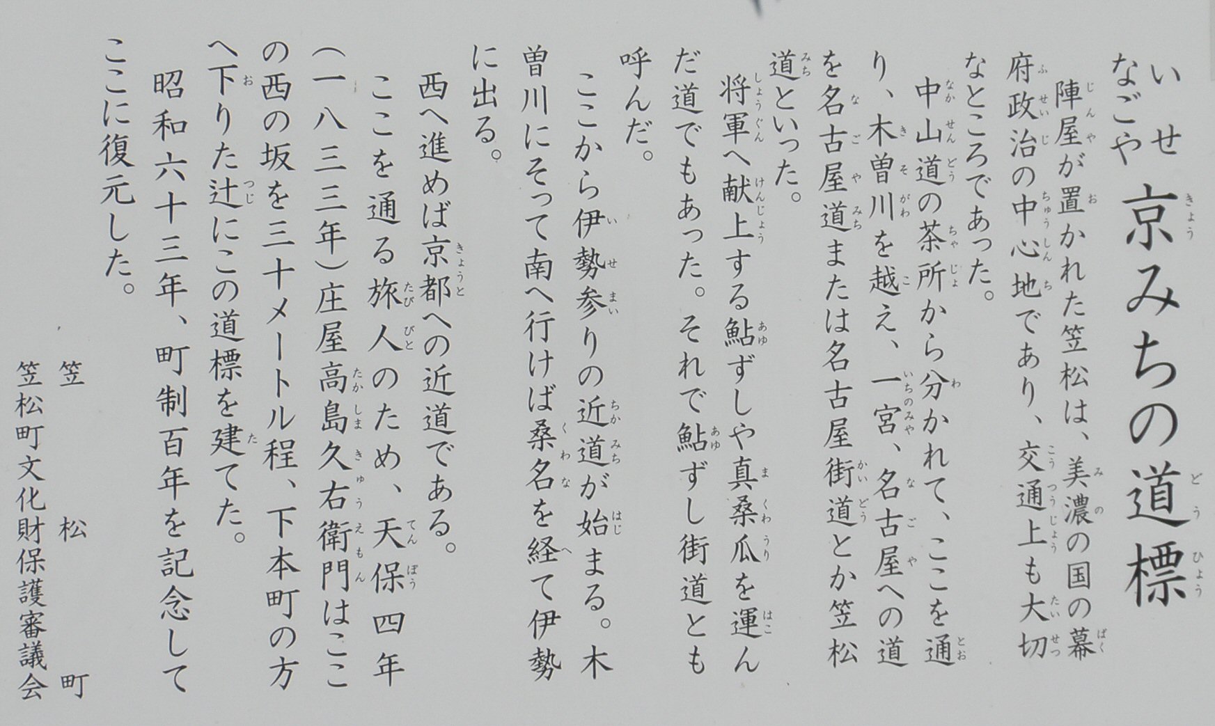 京みちの道標(笠松湊公園) Top![]() |
