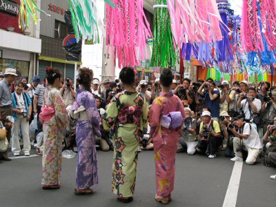 ![]() 2007ミス七夕・ミス織物の写真撮影会。第52回 おりもの感謝祭は7月26日〜29日まで開催 |