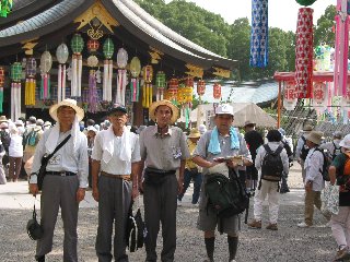 真清田神社の前で(後左は記念のスタンプを押しています)0.9Km 右は一宮女子短大へ向かう