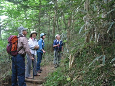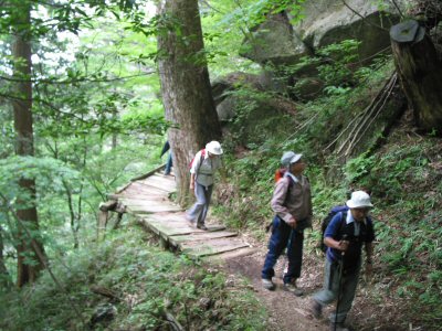 ![]() 木曽檜を中心とした原生林では、樹齢300年以上の樹木 が多く、見事であった。 |