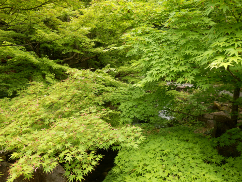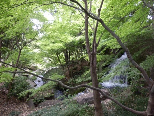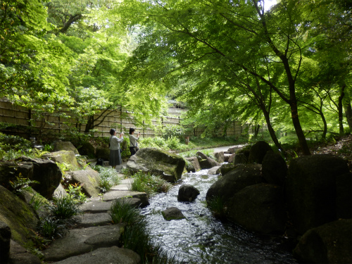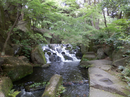★徳川園「概要」 所在地:愛知県名古屋市東区徳川町1001 (wikipedia) ★top徳川園(とくがわえん)は、愛知県名古屋市東区徳川町にある日本庭園。 隣接して、国宝の「源氏物語絵巻」を展示する事で有名な徳川美術館や、河内本『源氏物語』を所蔵する名古屋市蓬左文庫がある 「概要」 1695年に造営された尾張藩2代藩主徳川光友の隠居所の大曽根御屋敷跡(当時の敷地は約44ha)に築造された池泉廻遊式の大名庭園 である。園内に配置された山、大曽根の瀧、渓流、龍仙湖、牡丹園、菖蒲田はそれぞれ、木曽山脈、木曽三川、伊勢湾、濃尾平野に 見立てられてのものであり、自然の景観を凝縮している。これは、尾張国の、土地柄の豊かさを表現したものである。 また園内の龍門の滝は、尾張藩江戸下屋敷戸山荘跡(現在の早稲田大学戸山キャンパス)から発掘された龍門の瀧の遺構を移設した ものである。通常の流量は多くはないが、約20分おきに激流となる仕掛けを施して、下流にある飛石を水に沈めるというかつての 戸山荘でのエピソードを再現したものとなっている。 瑞龍亭は、尾張徳川家が織田有楽斎を流祖とする有楽流を重用していたことから、有楽好みとした三畳台目の茶室である。 躙り口手前の燈籠も有楽好みの燈籠を再現したものである。 敷地から離れて西にロータリーがあり、そこには古井戸と藪椿の姿が見えるが、これも古くは徳川園の一部であった。 古井戸は明治期に作られたもの。藪椿は元は光友のお手植えだったが、やはり太平洋戦争時に失われたものの、今はその二代目が 植えられている。園西側の黒門は明治22年に建立された欅づくりの三間薬医門であり、戦災を免れた徳川邸の遺構として今日に 大名屋敷の記憶を留めている。 「歴史」 元は尾張徳川家の大曽根別邸で、2代藩主光友の時代、1694年(元禄7年)、または1695年(元禄8年)に隠居所として建造された。 光友の歿後大曽根別邸は、尾張藩家老の成瀬家、石河家、渡邊家に渡る。1889年(明治22年)、尾張徳川家の手に戻りその邸宅と なったが、1931年(昭和6年)、尾張徳川家第19代当主徳川義親により名古屋市に寄贈された。だが、1945年(昭和20年)名古屋 大空襲に被災して破壊された。その後はただの公園に整備されたが、2005年(平成17年)に日本庭園として再び造営された。 |