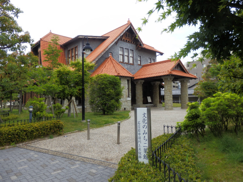 ★文化のみち二葉館(HP参照) ★top 日本の女優第一号として名をはせた川上貞奴と電力王と言われた福沢桃介が共に暮らした家です。 創建当時は、文化のみちエリアの北端、東二葉町にあり、2000坪を超える敷地に建てられた和洋折衷の建物は、その斬新さと豪華さ から「二葉御殿」と呼ばれ、 政財界人や文化人の集まるサロンとなりました。 当時、慶応義塾の先輩である矢田績に招かれ、「名古屋電燈(株)」の取締役に就任した桃介は、 木曽川での水力発電を進める為に 名古屋に拠点を構え、事業パートナーとして貞奴を呼び寄せたとも言われています。 設計は、当時新進気鋭の住宅専門会社「あめりか屋」に依頼し、建物内部に驚くべき電気装備が施される一方、貞奴の好みも至る所に 取り入れられました。 当時の記録では、玉砂利の道を入っていくと、車寄せの前がロータリー。 松の木などが植えられ、芝生の庭にはしだれ桜やもみの木、 電気仕掛けの噴水やサーチライトがあったようです。 円形に張り出したソファがある大広間では、ステンドグラスが柔らかい光を投げかけていたことでしょう。 ここで貞奴は、毎日やって来る大勢の客への茶菓や晩餐の手配に追われる傍ら、川上絹布の経営者としての仕事もこなしました。 また、電車で3時間かかる木曽のダム建設現場へ出かける桃介に同行することもありました。それは、忙しくとも充実した暮らしで あったと思われます。 その後、病気がちになった桃介は東京へ戻り、貞奴も「川上児童楽劇園」の指導のため、次第に拠点を東京へと移していきます。 この名古屋時代の思い出は、二人の心の中に大切にしまわれていたに違いありません。 現在 橦木町の場所への移築復元工事が始められたのは、平成12年2月。5年の歳月をかけて完成・開館した旧川上貞奴邸は、 平成17年2月、文化のみち二葉館(名古屋市旧川上貞奴邸)としてよみがえり、国の文化財に登録されました。★top |
