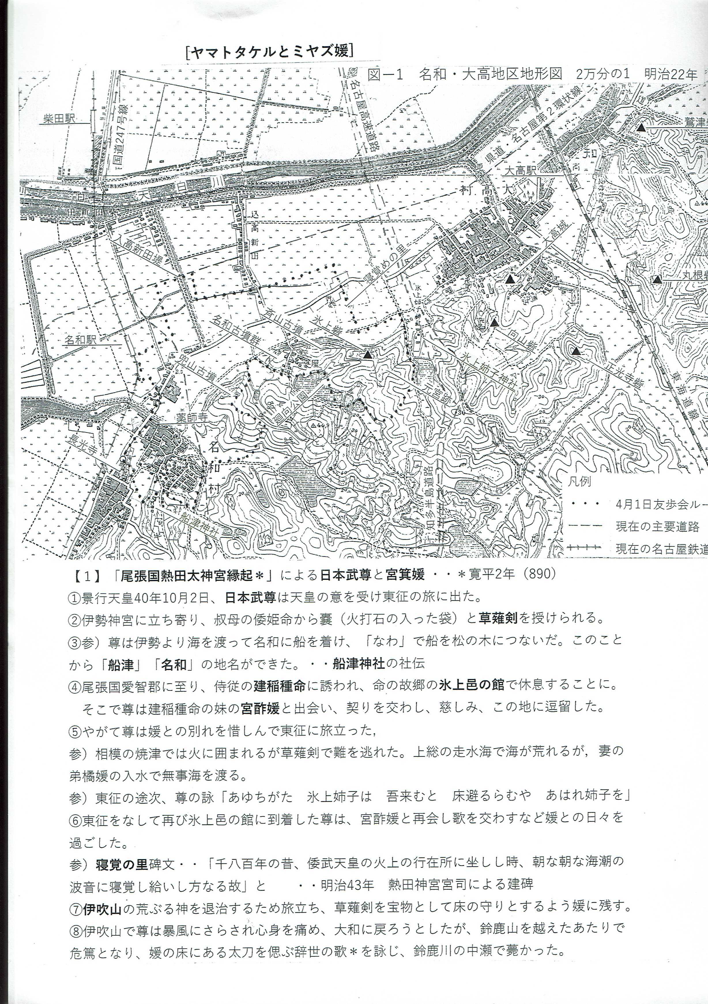 「ヤマトタケルとミヤズ媛」 及び 名和・大高地区地形図 明治22年 図1 MKさん提供 2023.4.1 Top![]() |