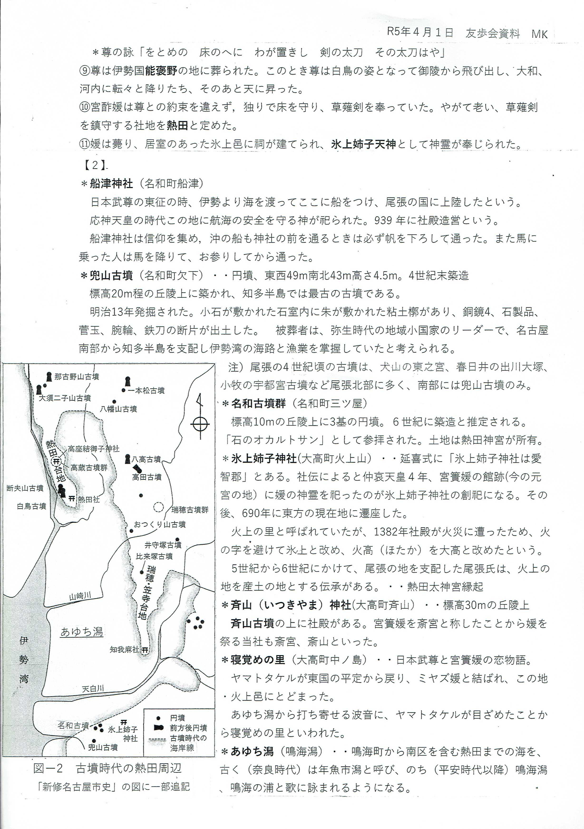 図−2 古墳時代の熱田周辺(コースの見所解説含む) MKさん提供 Top![]() |