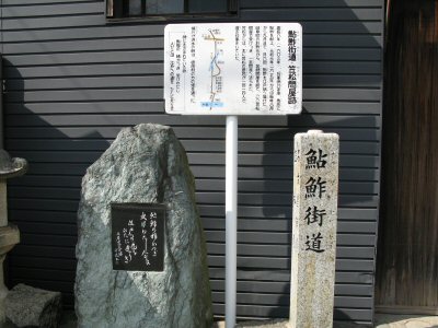 ![]() 高嶋家前にある鮎鮨街道の標識 高嶋家前にある案内板(★拡大はここ) |