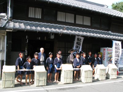![]() 高嶋家は鮎鮨街道の宿次(荷の受渡)を務めた 問屋場で古文書が残っている(高嶋:左4人目) |