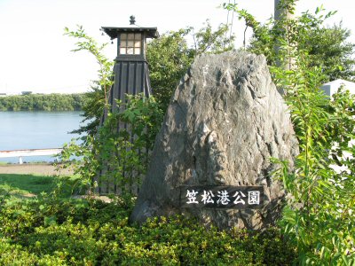 笠松湊 ★Topへ 出典: フリー百科事典『ウィキペディア(Wikipedia)』 ★Topへ 笠松湊(川灯台) 木曽川笠松渡舟場跡(石畳)笠松湊(かさまつみなと)とは岐阜県羽島郡笠松町港町にあった川港である。 木曽川水運の中継地点として発展していた。現在は笠松みなと公園として整備されており、川灯台が建てられている。 港までの道には河原石を敷き詰めた石畳が今でも残っている。 笠松渡船場跡石畳は県指定史跡(昭和42年11月)。 概要 寛文2年(1662年)美濃国奉行(美濃郡代)名取半左衛門長知が郡代陣屋を移し、傘町から笠松に改称してから 約200年にわたり、笠松陣屋を中心に、徳川幕府直轄地支配や治水行政の中心地、地方物資の集散地となった。 木曽川水運の拠点としても発展し、下流の桑名、四日市、名古屋からは海産物や塩、衣類などが運ばれ、上流からは 年貢米や材木、薪炭などが運ばれた。 かつては問屋や倉庫、船宿、料亭などが立ち並び木曽川随一の繁栄を誇っていた。 明治18年(1885年)には笠松湊へ寄港する船は1日平均38艘、1年間に6,440艘あまりで、明治25年(1892年)ごろ までは桑名からの蒸気船が1日2往復していた。 大正から昭和初期には、ポンポン船と呼ばれる大型発動機船の時代となったが、近年鉄道の普及、自動車の発達に より笠松港の役割は終わった。 ★Topへ |